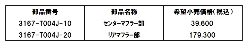 部品価格表 167-T004J