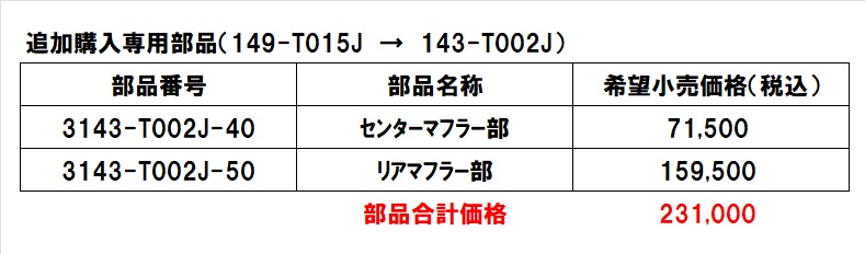 143-T002Jにアップグレードの場合